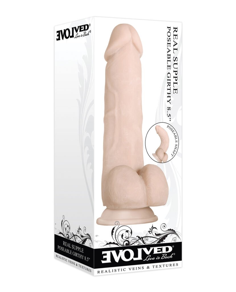 This poseable real supple extra-thick dildo is perfect for realistic hands-free play with its powerful suction cup base and life-like material.
