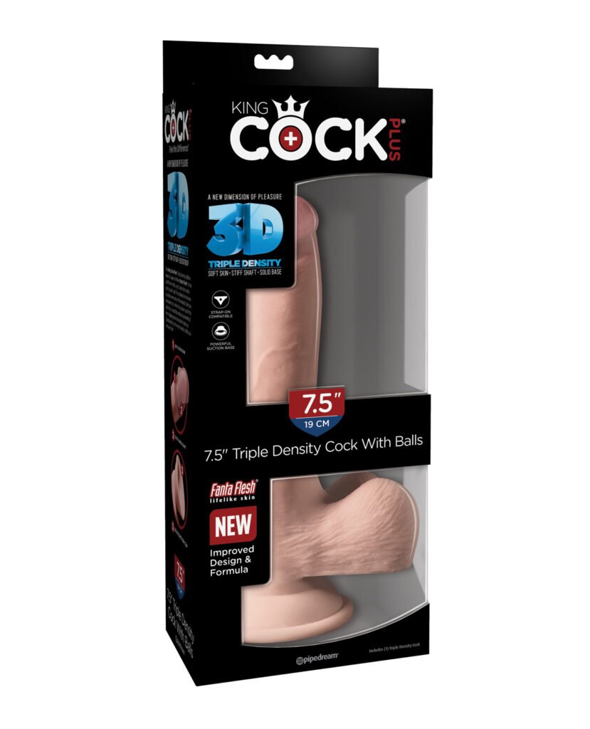 The King Cock Plus 7.5" Triple Density Cock with Balls is made of new and improved Fanta Flesh material, making it stiff on the inside and soft on the outside.